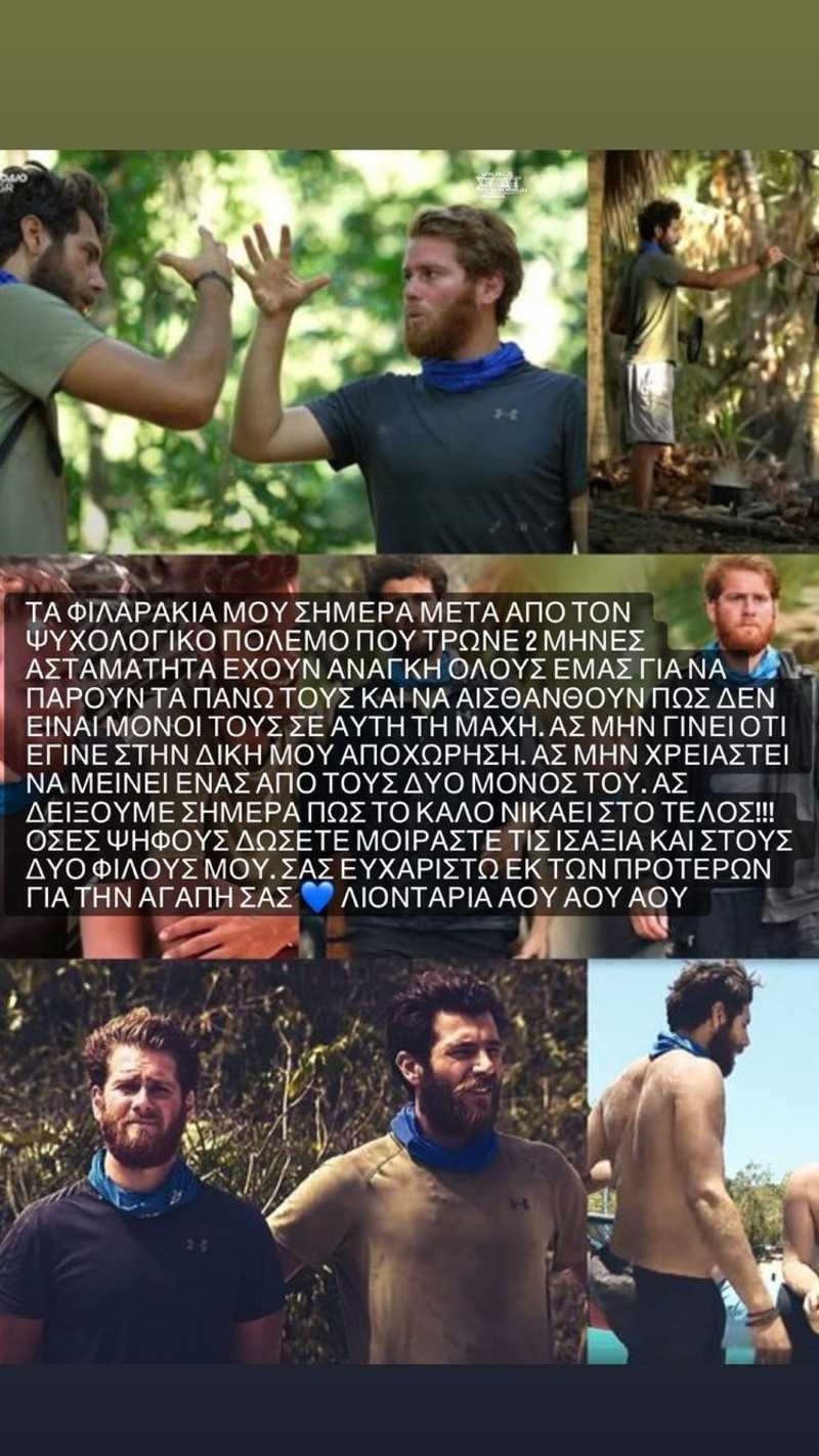 «Τα φιλαράκια μου σήμερα μετά τον ψυχολογικό πόλεμο που τρώνε δυο μήνες ασταμάτητα, έχουν ανάγκη όλους εμάς για να πάρουν τα πάνω τους και να αισθανθούν πως δεν είναι μόνοι τους σε αυτή τη μάχη.