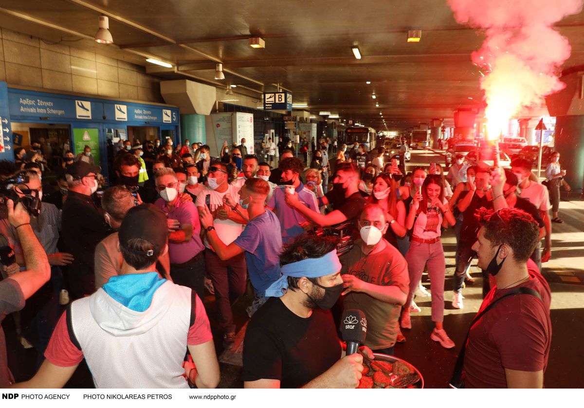 Πλήθος κόσμου περίμενε όλο το απόγευμα την άφιξη του Νίκου Μπάρτζη στο αεροδρόμιο Ελευθέριος Βενιζέλος. Φωνάζοντας συνθήματα και κρατώντας στα χέρια τους πανό.