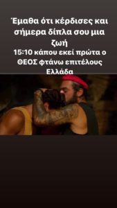 “Έμαθα ότι κέρδισες και σήμερα. Δίπλα σου μια ζωή. 15:10 κάπου εκεί πρώτα ο ΘΕΟΣ φτάνω επιτέλους Ελλάδα.”