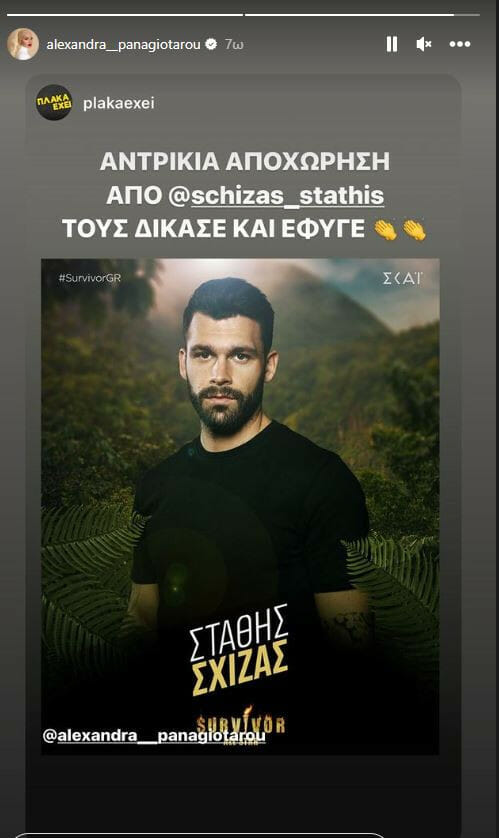 Την πρώτη της ανάρτηση μετά την οικειοθελή αποχώρηση του Σχίζα, έκανε η Αλεξάνδρα Παναγιώταρου στον προσωπικό της λογαριασμό στο Instagram.