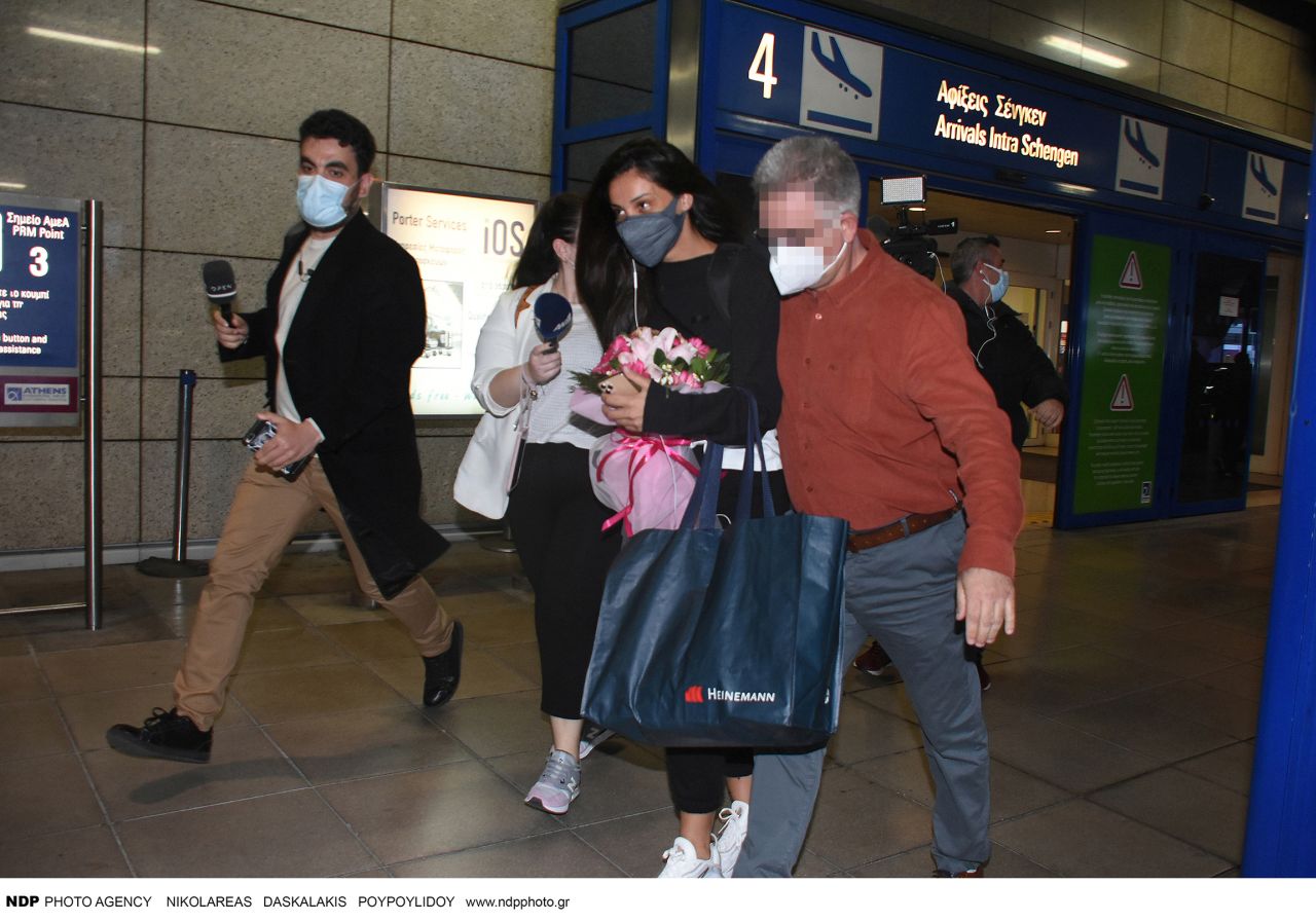 Η σχεδιάστρια μόδας έφτασε το απόγευμα της Κυριακής στο αεροδρόμιο όπου την περίμενε ένα μπουκέτο λουλούδια για καλωσόρισμα.