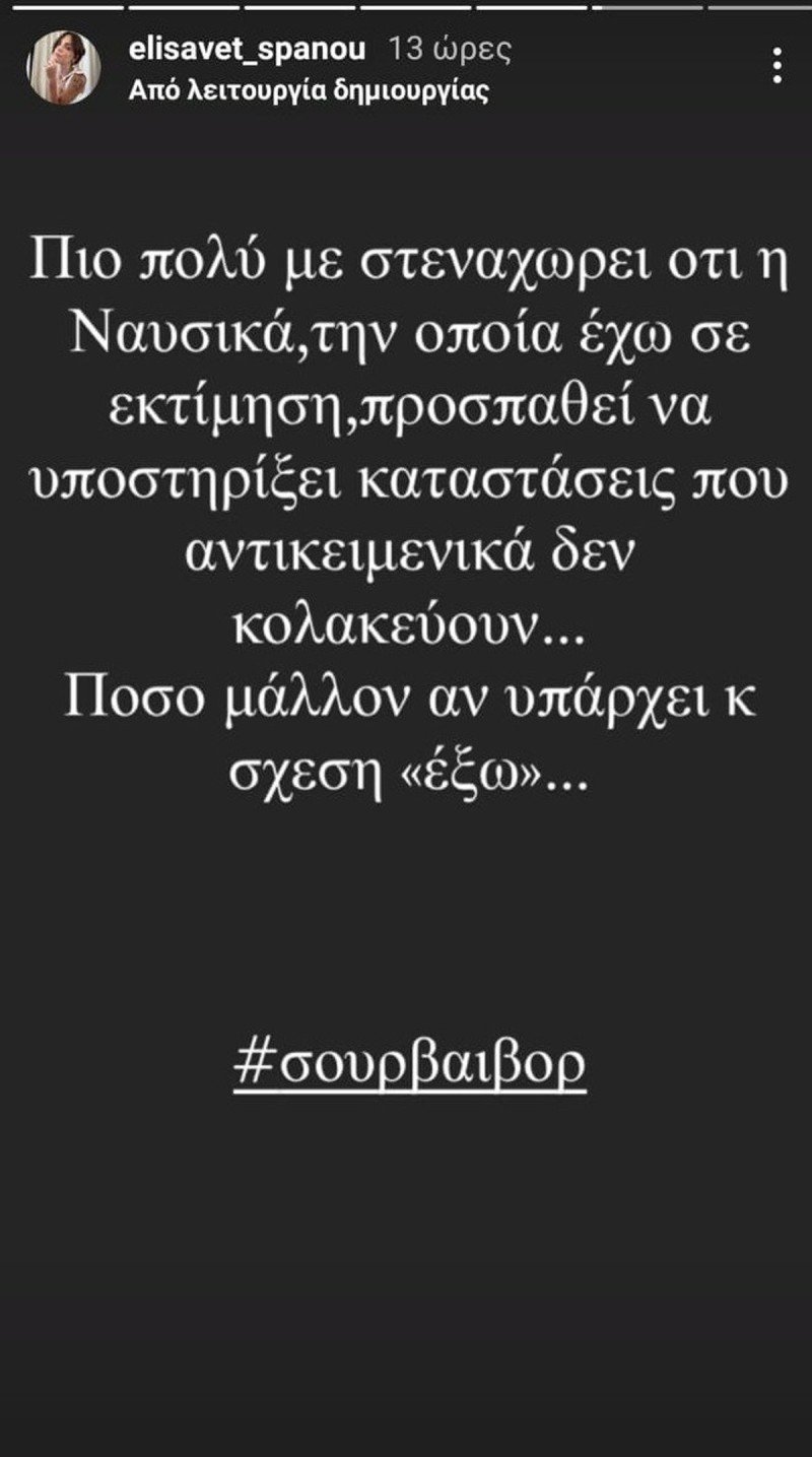 Με δύο αναρτήσεις που έκανε στον προσωπικό της λογαριασμό στο Instagram η Ελισάβετ Σπανού.