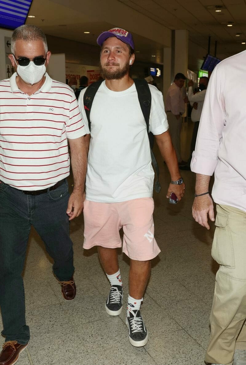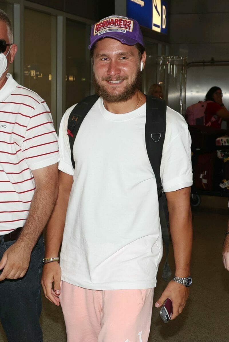 Φορώντας ένα λευκό μπλουζάκι και ροζ βερμούδα με καπέλο, ο Γιώργος Ταλάντσεβ βγήκε χαμογελαστός μπροστά στους φωτογράφους που περίμεναν. Συνοδευόμενος όπως όλοι από ανθρώπους της παραγωγής.