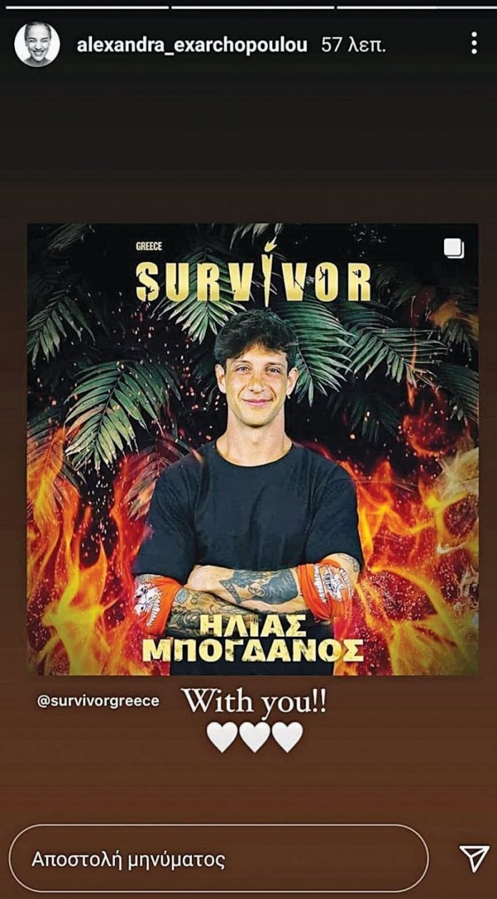 Με αφορμή την είσοδό του στο ριάλιτι, η Αλεξάνδρα, που ήδη της λείπει ο Ηλίας, θέλησε να του στείλει τη θετική της ενέργεια.