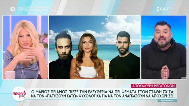 Και πρόσθεσε ο δημοσιογράφος στο «Πρωινό Μας»: «Ο Μάριος είναι ο άνθρωπος ο οποίος με πίεσε και μου ζήτησε να πάω εγώ να πω στον Στάθη Σχίζα ψέματα, γιατί εγώ δεν είμαι παίκτρια αξιώσεων τελικού, ο Μάριος είναι παίκτης αξιώσεων τελικού».