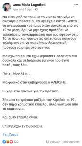 Η Άννα Μαρία Λογοθέτη έγραψε στον προσωπικό της λογαριασμό στο Facebook: