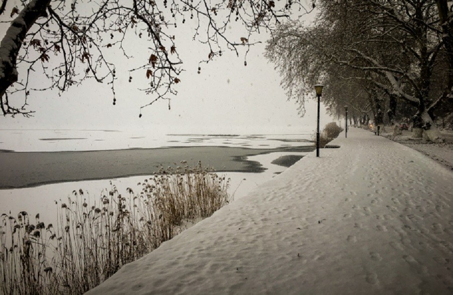 Πάγωσε η λίμνη της Καστοριάς: απίστευτες ολόλευκες εικόνες