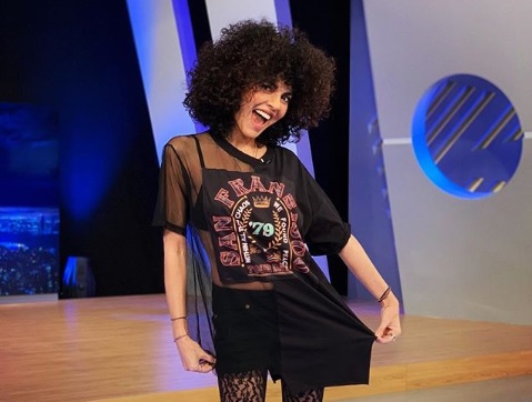 So sexy Mαρία Σολωμού με δερμάτινο κορμάκι και διχτυωτό καλσόν (φωτογραφία)