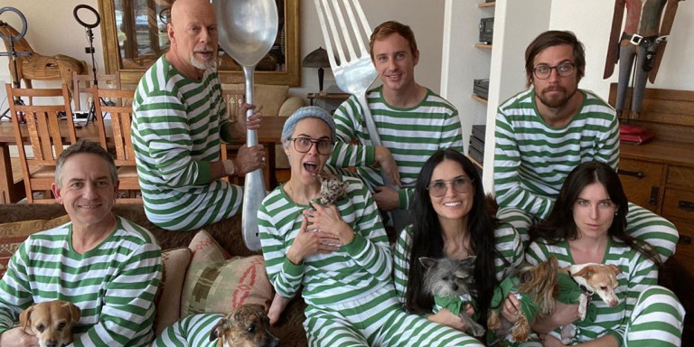Μπρους Γουίλις: η Χριστουγεννιάτικη οικογενειακή φωτογραφία με τη σύζυγό του Έμμα Χέμινγκ και τις κόρες τους, φορώντας τα δώρα της πρώην του,Ντέμι Μούρ