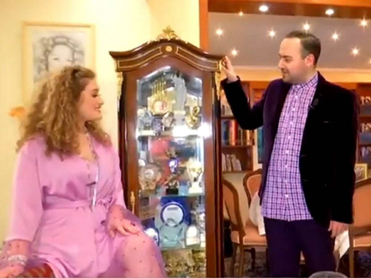 Το σπίτι διαθέτει τέσσερα σαλόνια, τζακούζι, ειδικές ντουλάπες για τις γούνες του Μαυρικίου και βιτρίνες με τα αναρίθμητα βραβεία του