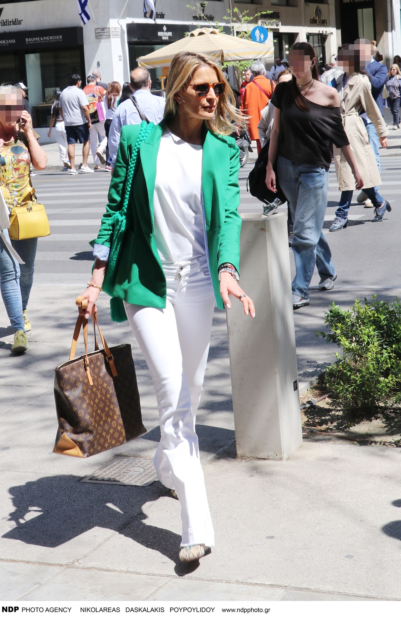 Σοβαρή και στιλάτη έκανε τη βόλτα της στη Βουκουρεστίου και συναντήθηκε με τους συνεργάτες της.