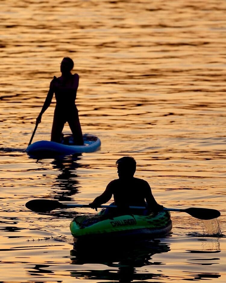 Σε ένα από τα πολλά στιγμιότυπα από τις διακοπές της, φαίνεται η Τατιάνα Στεφανίδου να απολαμβάνει το ηλιοβασίλεμα στη θάλασσα κάνοντας SUP, ενώ, ο Νίκος Ευαγγελάτος είναι δίπλα της επάνω σε κανό.