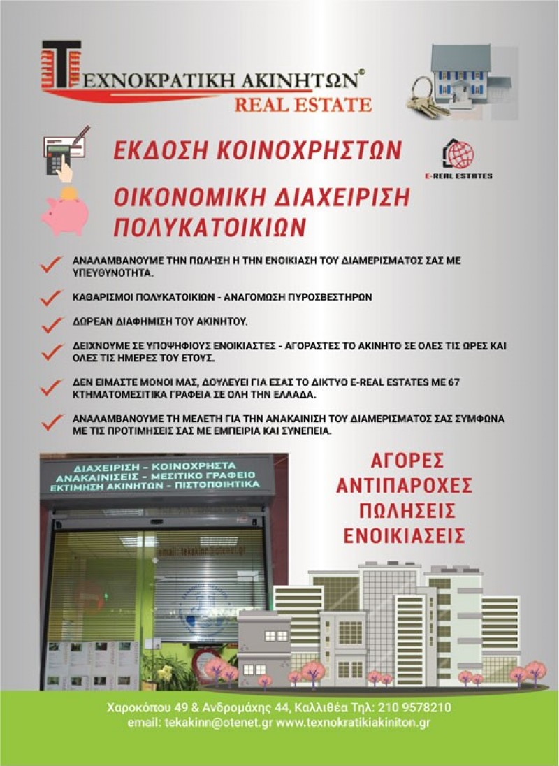 • Δεν είμαστε μόνοι μας, δουλεύει για εσάς το δίκτυο e-real estates με 67 κτηματομεσιτικά γραφεία σε όλη την Ελλάδα.