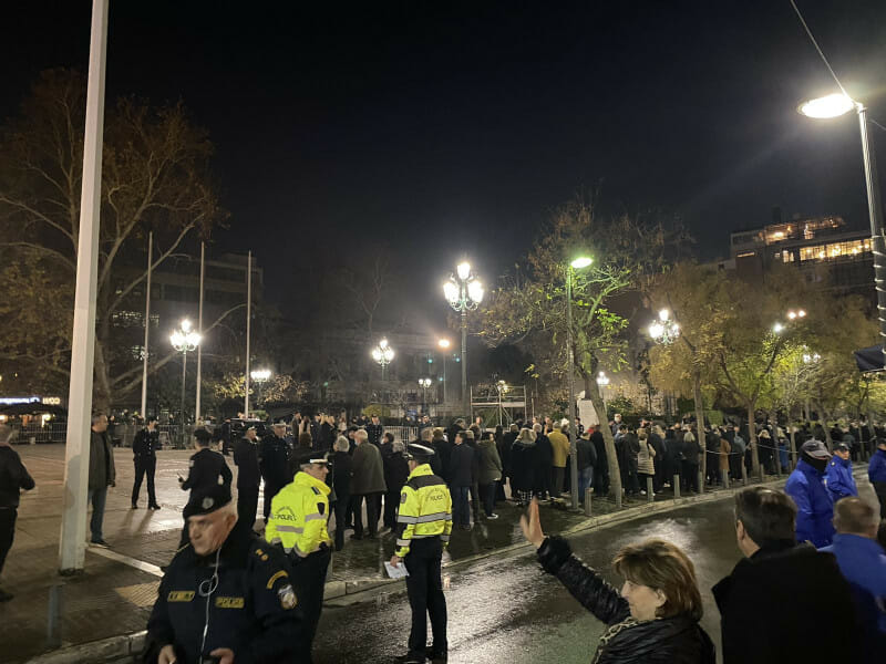 Η ουρά του κόσμου διατρέχει όλη την οδό Μητροπόλεως και φτάνει σχεδόν μέχρι το Μοναστηράκι. Σύμφωνα με την Αστυνομία, αυτοί που περιμένουν είναι περίπου 5.000.