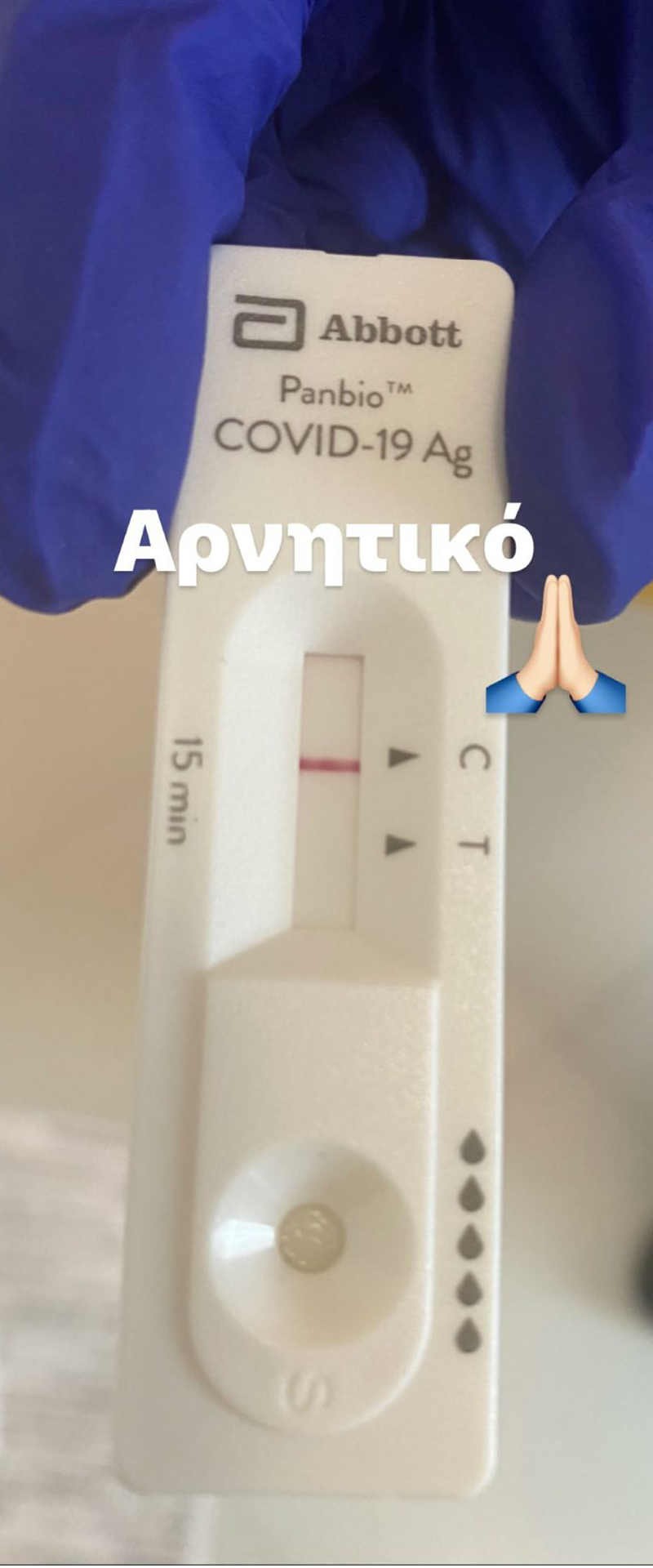 Ο Γιάννης βγήκε αρνητικός στον Covid-19 και όπως φαίνεται, ένιωσε μεγάλη ανακούφιση, αν κρίνουμε από τη φωτογραφία που ανάρτησε με το τεστ, χρησιμοποιώντας πάνω της ένα emoticon με δύο χέρια να ευχαριστούν.
