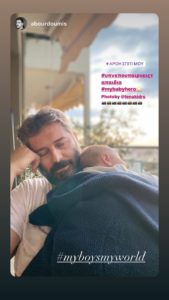 stastory με τον σύζυγο της να κοιμάται έχοντας στην αγκαλιά του τον γιο τους.