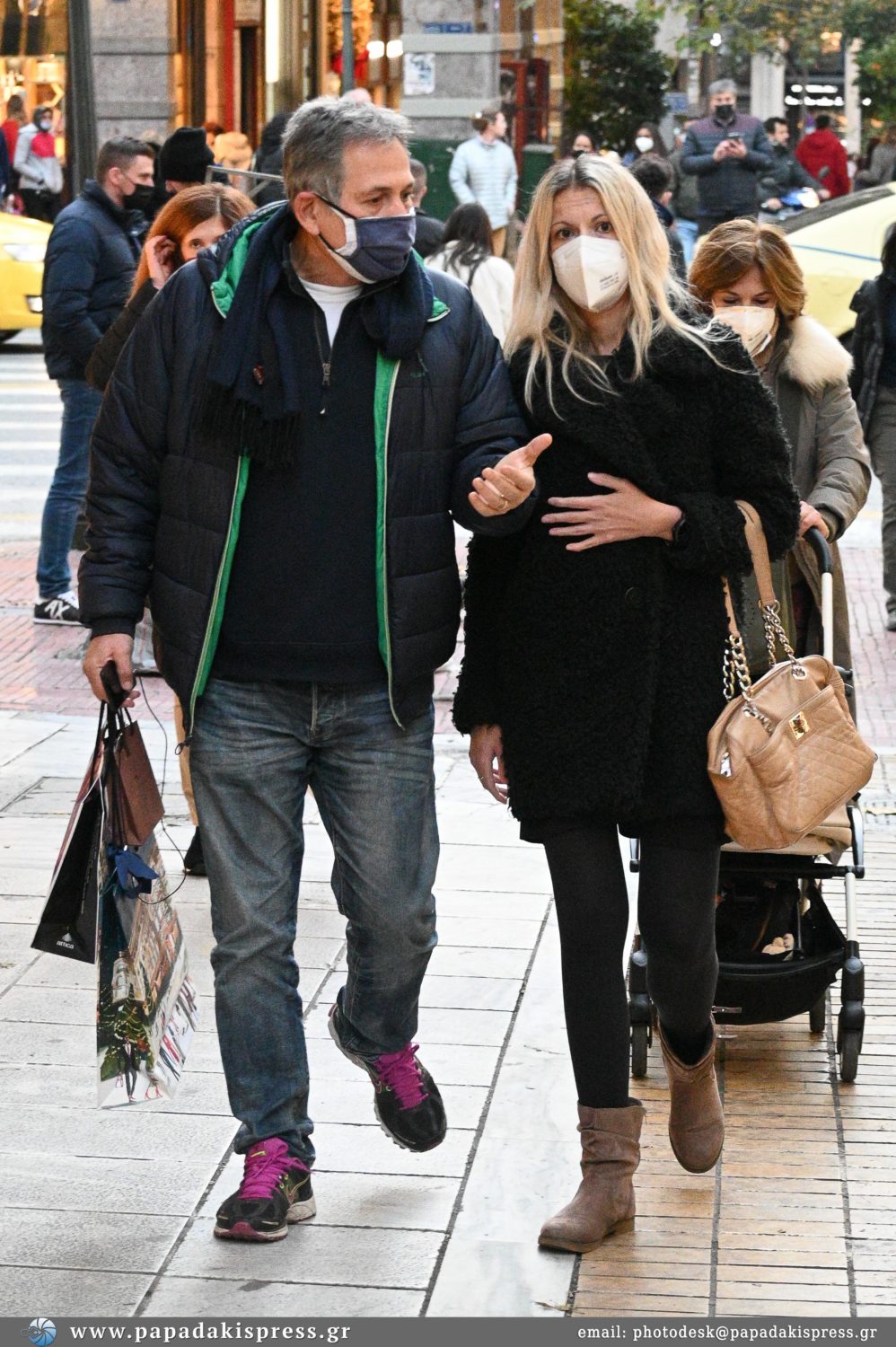 Το ζευγάρι σε μια από τις σπάνιες εμφανίσεις του, απαθανατίστηκε πρόσφατα στο κέντρο της Αθήνας και πιο συγκεκριμένα στη Βουκουρεστίου για τις αγορές του.