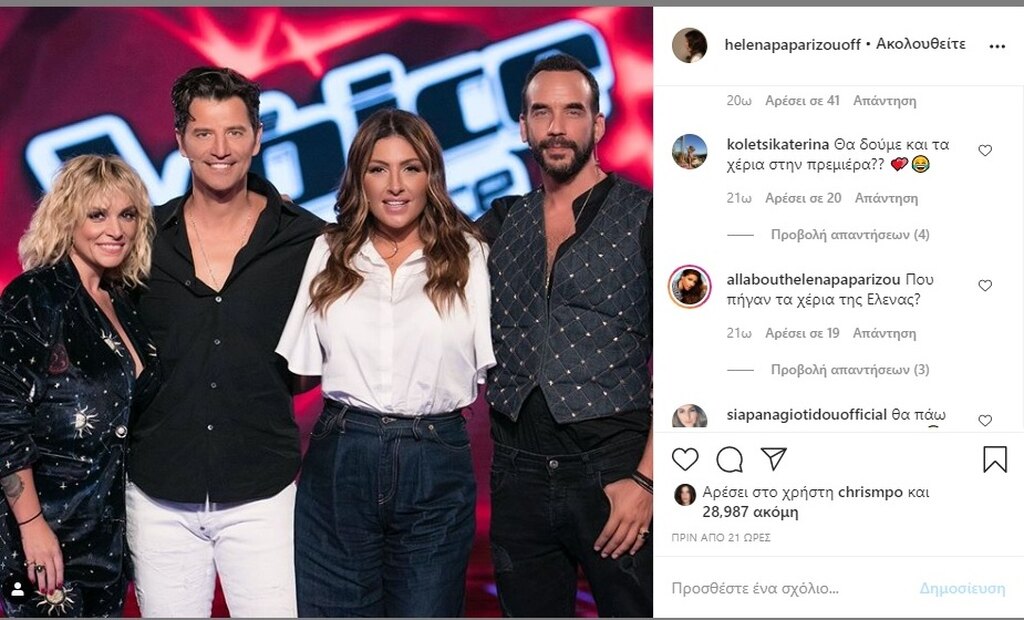 Τα γυρίσματα έχουν ξεκινήσει εδώ και λίγες ημέρες και μέσα από τον λογαριασμού της Έλενας Παπαρίζου είδαμε την πρώτη φετινή ομαδική φωτογραφία των coaches. Η οποία έθεσε αρκετά ερωτήματα στο κοινό.