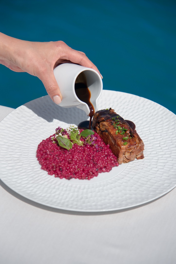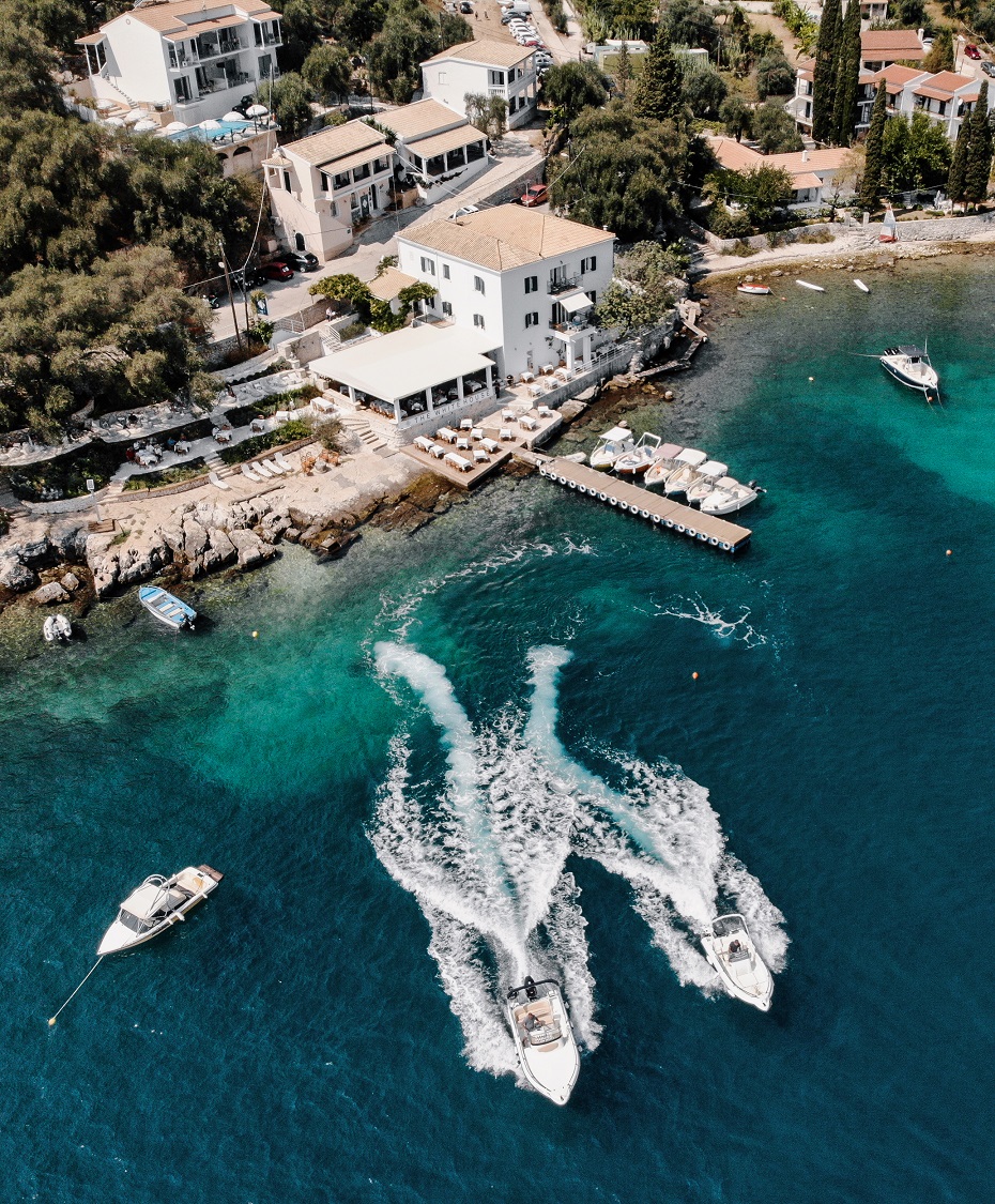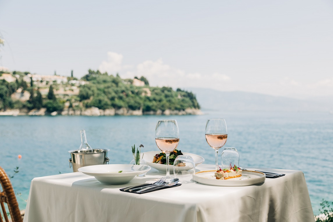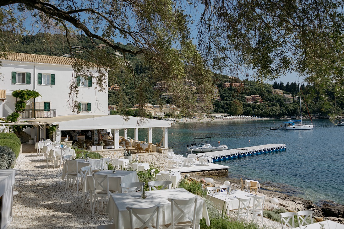 Μέσα στο όμορφο αυτό σκηνικό πάνω στη θάλασσα με κομψή, αισθησιακή και σύγχρονη ατμόσφαιρα, απολαύστε πιάτα με την υπογραφή του πολυβραβευμένου Έλληνα σεφ Λευτέρη Λαζάρου. Εδώ θα βρείτε παραδοσιακή κερκυραϊκή και δημιουργική ελληνική κουζίνα, μενού θαλασσινών, κρεατικών, vegan, vegetarian, gluten free.