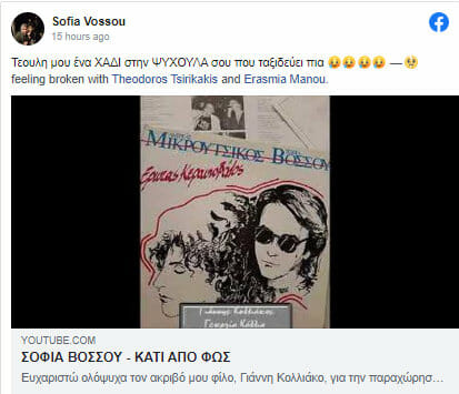 Το δικό της «αντίο» είπε και η Σοφία Βόσσου, επίσης μέσα από το Facebook, καθώς σημείωσε: «Τεούλη μου ένα χάδι στην ψυχούλα σου που ταξιδεύει πια».