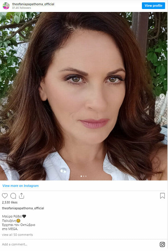Στη λεζάντα έγραψε: «Μαύρο Ρόδο! Πολυξένη… Έρχεται τον Οκτώβριο στο MEGA».