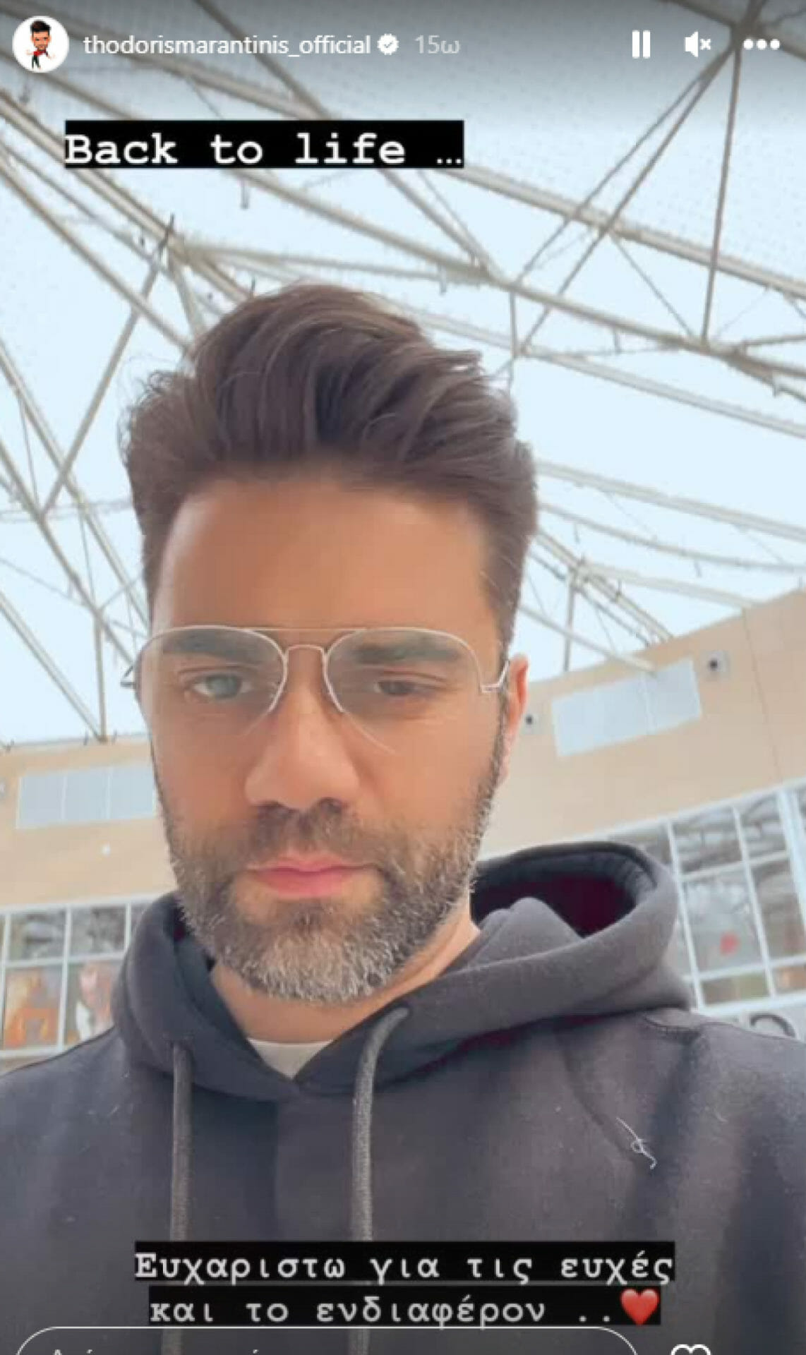 Ο Μαραντίνης έγραψε «Back to life» και ευχαρίστησε όσους επέδειξαν ενδιαφέρον για την κατάστασή του και για τις ευχές που έστειλαν.