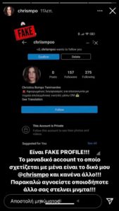 «Είναι fake profile! Το μοναδικό account το οποίο σχετίζεται με μένα είναι το δικό μου chrismpo και κανένα άλλο!