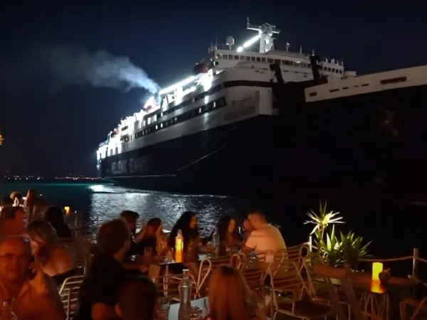 Βίντεο στο YouTube δείχνει τα εντυπωσιακά πλάνα από το λιμάνι, με τον ατμοσφαιρικό φωτισμό του μπαρ να συμπληρώνει το επιβατικό της Hellenic Seaways, το Nissos Rodos, που μοιάζει να περνάει πάνω από τους πελάτες, λόγω του μεγέθους του.