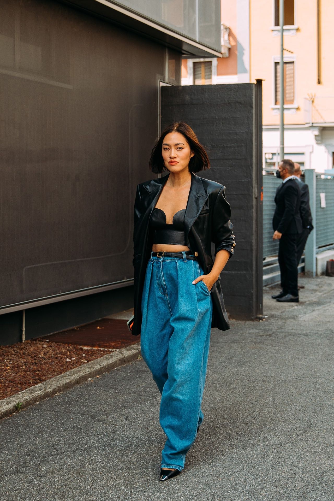 Leather love: Ένα δερμάτινο κοντό τοπ και ένα δερμάτινο σακάκι από πάνω συνθέτουν την απόλυτη σέξι εμφάνιση.