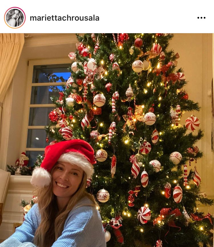 Τα Χριστούγεννα μπήκαν νωρίτερα φέτος σε πολλά σπίτια για να φτιάξουν τη διάθεση των ανθρώπων λόγω της πανδημίας. Έτσι έκανε και η Μαριέτα Χρουσαλά, η οποία στόλισε το Χριστουγεννιάτικο δέντρο στο σπίτι της και φωτογραφήθηκε μπροστά του φορώντας έναν σκούφο του Άη Βασίλη.
