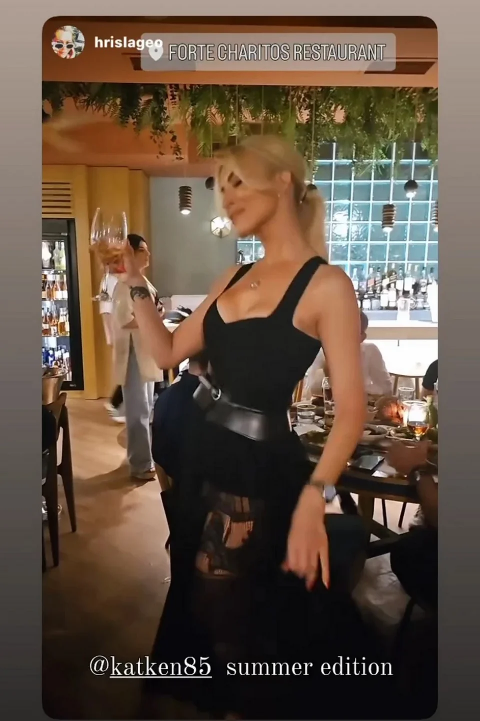 Στις σχετικές εικόνες, η παρουσιάστρια εντυπωσιάζει με την εμφάνισή της φορώντας ένα μαύρο φόρεμα με φούστα από δαντέλα και διαφάνειες, ενώ η ίδια δείχνει να έχει ιδιαίτερα καλή διάθεση.