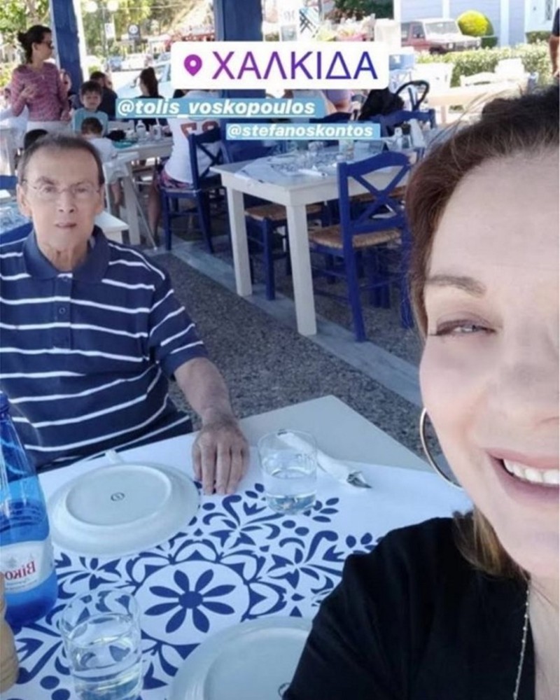 Πρόκειται συγκεκριμένα για ένα instastory της συζύγου του, Άντζελας Γκερέκου σε ταβέρνα της Χαλκίδας, την Τετάρτη 7 Ιουλίου 2021.