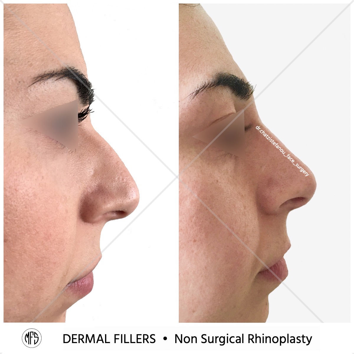 Η μη χειρουργική ρινοπλαστική (“Liquid Rhinoplasty”) είναι μια γρήγορη και ανώδυνη διαδικασία βελτίωσης της εμφάνισης της μύτης με έγχυση υαλουρονικού οξέος. Αποτελεί εξαιρετική λύση για όσους επιθυμούν να διορθώσουν εύκολα και γρήγορα, μικρές ασυμμετρίες κατά μήκος της γέφυρας της μύτης ή να κάνουν τη μύτη τους να φαίνεται πιο ίσια. Τα αποτελέσματα είναι άμεσα. Η μέθοδος μπορεί να συνδυαστεί με Botox για την εξάλειψη των ρυτίδων στα πλάγια της μύτης (“bunny lines”).