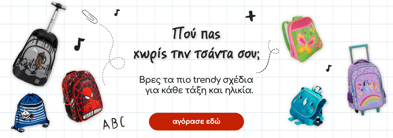 Θα βρείτε επίσης μεγάλη ποικιλία από σχολικά είδη, ώστε να είναι τα παιδιά έτοιμα για τη νέα σχολική χρονιά με στυλ και άνεση. Από τσάντες και τετράδια μέχρι κασετίνες και είδη γραφείου, όλα είναι εδώ για να κάνουν το σχολείο πιο διασκεδαστικό!