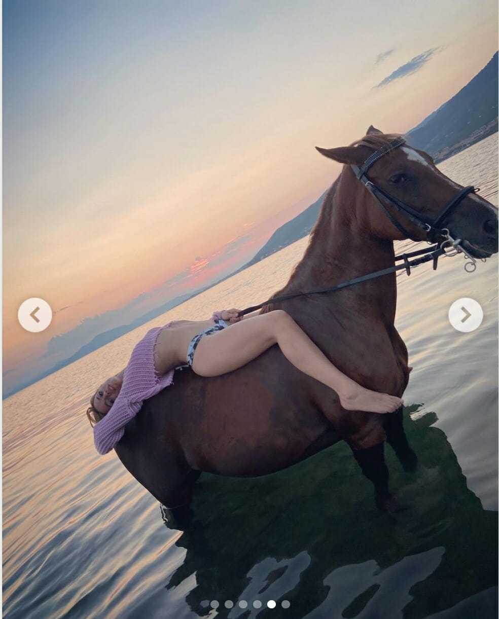 Η Τραϊάνα Ανανία ξάπλωσε πάνω στο άλογο με φόντο το απέραντο γαλάζιο και το ηλιοβασίλεμα καταφέρνοντας με τον τρόπο αυτό να αποσπάσει εκατοντάδες likes και σχόλια κάτω από την ανάρτηση της.