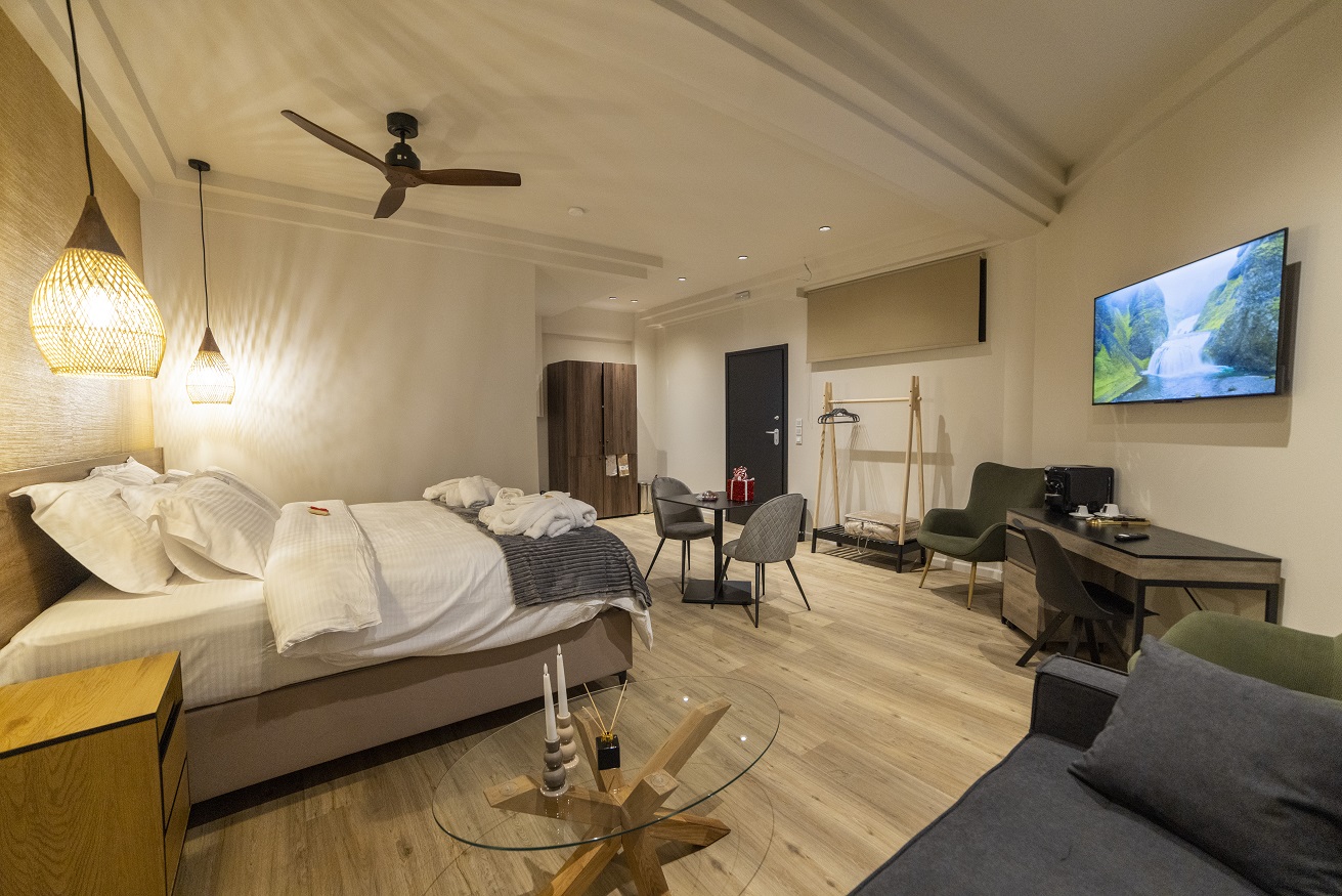 Σουίτες και δωμάτια πλήρως ανακαινισμένα και  εξοπλισμένα με όλες τις σύγχρονες ανέσεις, ιδανικά για απολαυστική διαμονή. Κάθε σουίτα έχει και μπαλκόνια με εξαιρετική θέα στο κέντρο της πόλης!