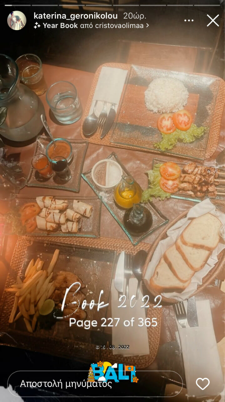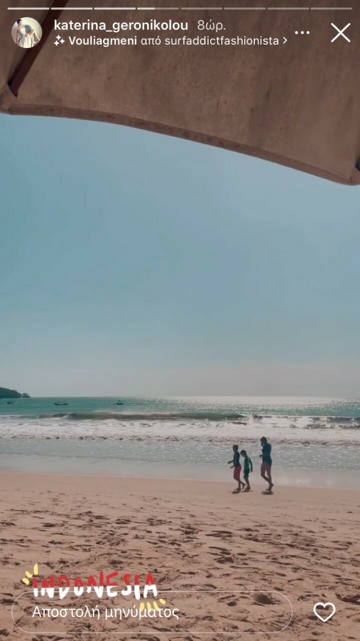 Εδώ και δύο μέρες το ζευγάρι ξεκίνησε τις καλοκαιρινές του διακοπές κάνοντας πράξη την επιθυμία τους για έναν εξωτικό προορισμό. Κι αυτός είναι το Μπαλί. Μάλιστα η Κατερίνα Γερονικολού δημοσιεύει στον λογαριασμό της στο Instagram τα υπέροχα τοπία του προορισμού τους. Αλλά και ο Γιάννης Τσιμιτσέλης έχει αρχίσει τις συγκρίσεις με τις διακοπές στην Ελλάδα.