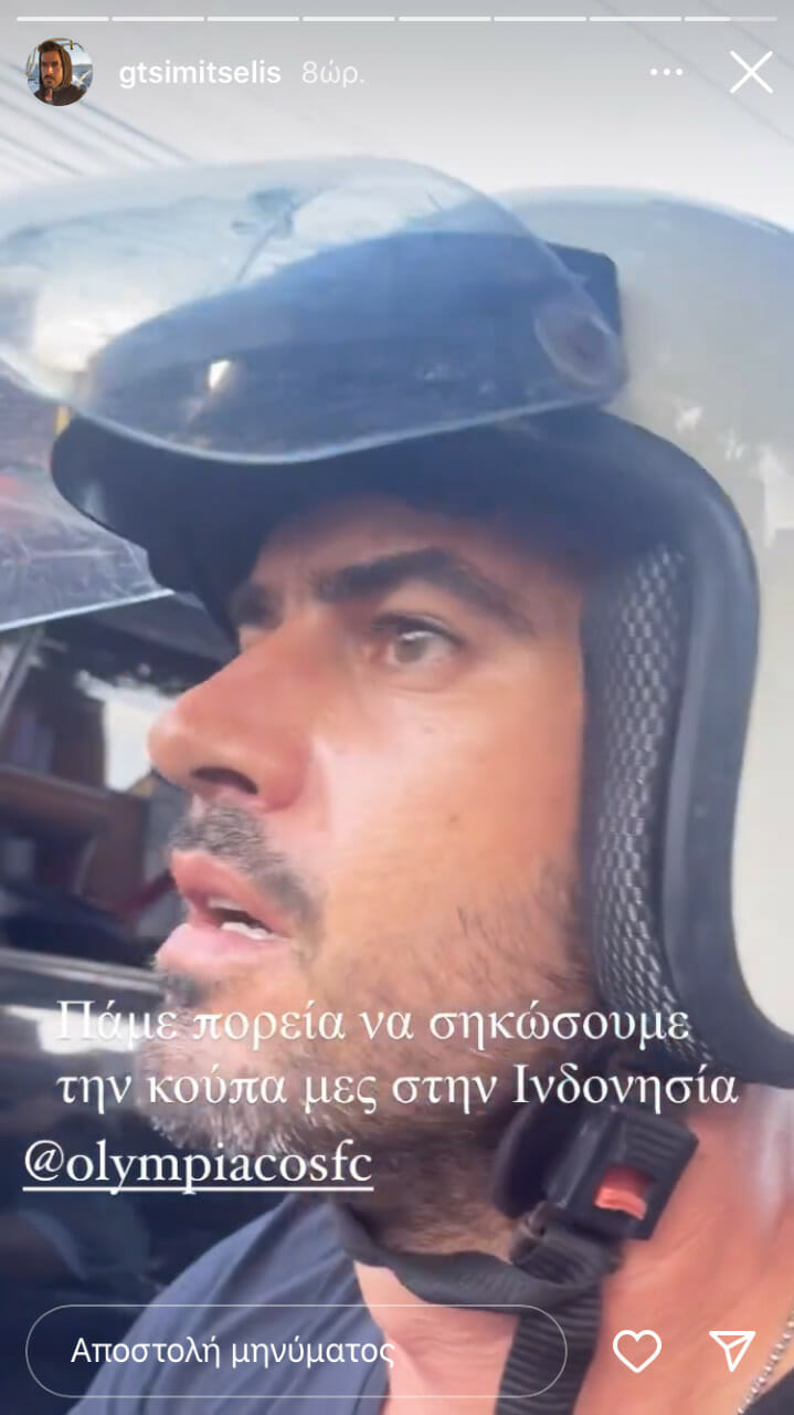Ο Γιάννης Τσιμιτσέλης είναι φανατικός οπαδός του Ολυμπιακού και φρόντισε να το δείξει και στο… Μπαλί. Εκεί βρίσκεται για διακοπές με την σύντροφό του Κατερίνα Γερονικολού.