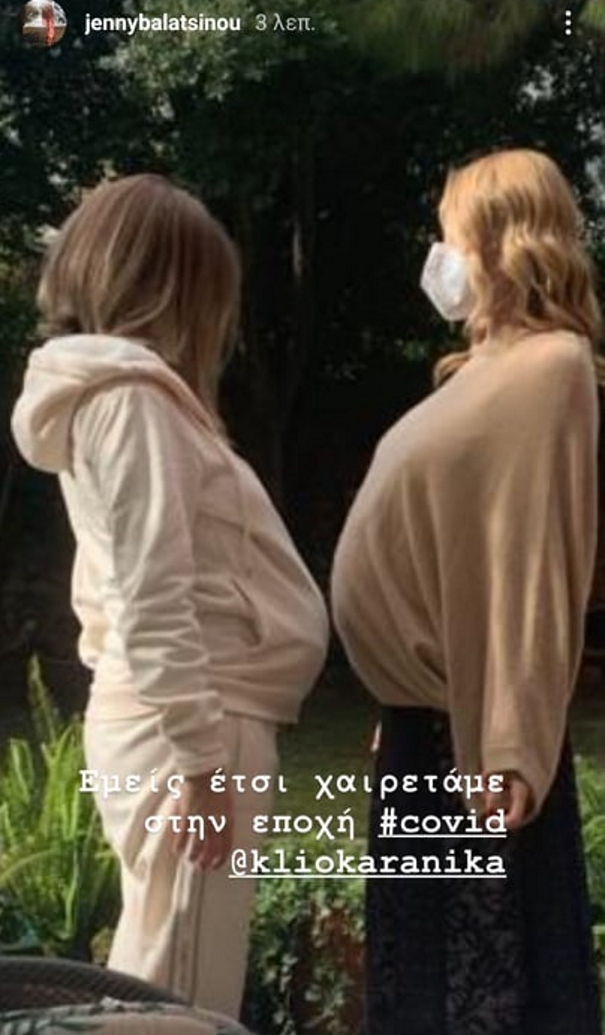 Πριν από λίγη ώρα, λοιπόν, θέλησε να αναρτήσει ακόμα ένα στιγμιότυπο. Συγκεκριμένα, ανέβασε μία ιστορία με την φίλη της, Κλειώ Καρανίκα, όπου και οι δύο ποζάρουν με… φουσκωμένες κοιλίτσες.