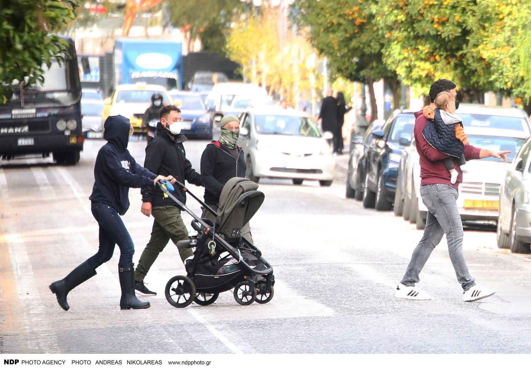 Περπάτησε στο κέντρο της πόλης έχοντας δίπλα τους τον ενός έτους γιο τους, Παναγιώτη-Αντώνιο.