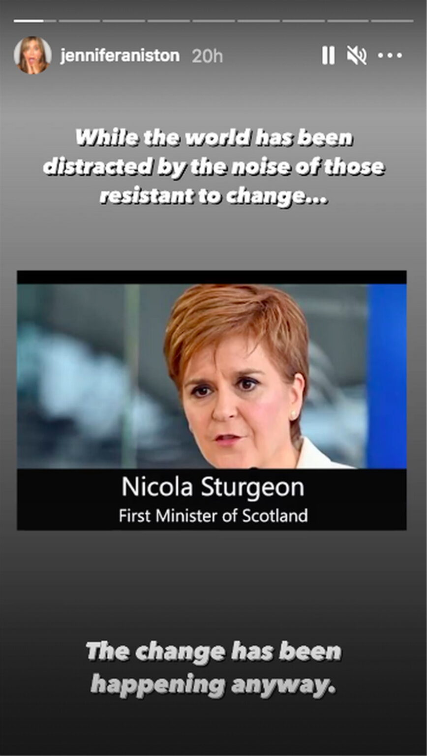 «Ενώ ο κόσμος αποσπάται από τον θόρυβο που προκαλούν όσοι αντιστέκονται στην αλλαγή… η αλλαγή έχει έρθει ούτως ή άλλως – Ενδυνάμωση των γυναικών και αλλαγή του κόσμου» ήταν η φράση με την οποία η σταρ συνόδευσε αυτά τα stories.