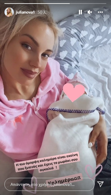Το μεσημέρι της Κυριακής η Τζούλια Νόβα ανέβασε στο instagram την πρώτη της φωτογραφία με τη νεογέννητη κορούλα της.