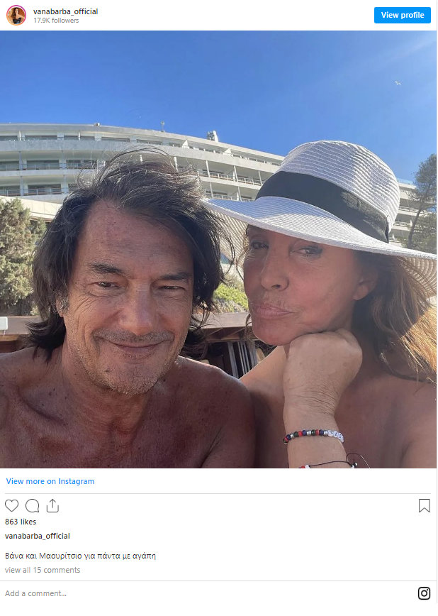 «Βάνα και Μαουρίτσιο για πάντα με αγάπη». Με το παραπάνω σχόλιο συνόδευσε η ηθοποιός Βάνα Μπάρμπα τη φωτογραφία της με τον Μαουρίτσιο Μπάτσι, την οποία «ανέβασε» στον προσωπικό της λογαριασμό της στο Instagram. Αμέσως, πολλοί πίστεψαν ότι πλέον οι δυο τους είναι και πάλι μαζί.