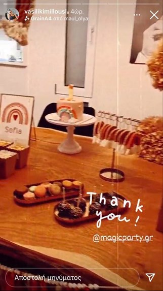 Έτσι, όπως είδαμε μέσα από τα social media της Βασιλικής Μιλλούση το σπίτι του ζευγαριού γέμισε γλυκά και εδέσματα και η μικρή έσβησε την τούρτα της έχοντας στο πλευρό της λίγους και καλούς καλεσμένους.