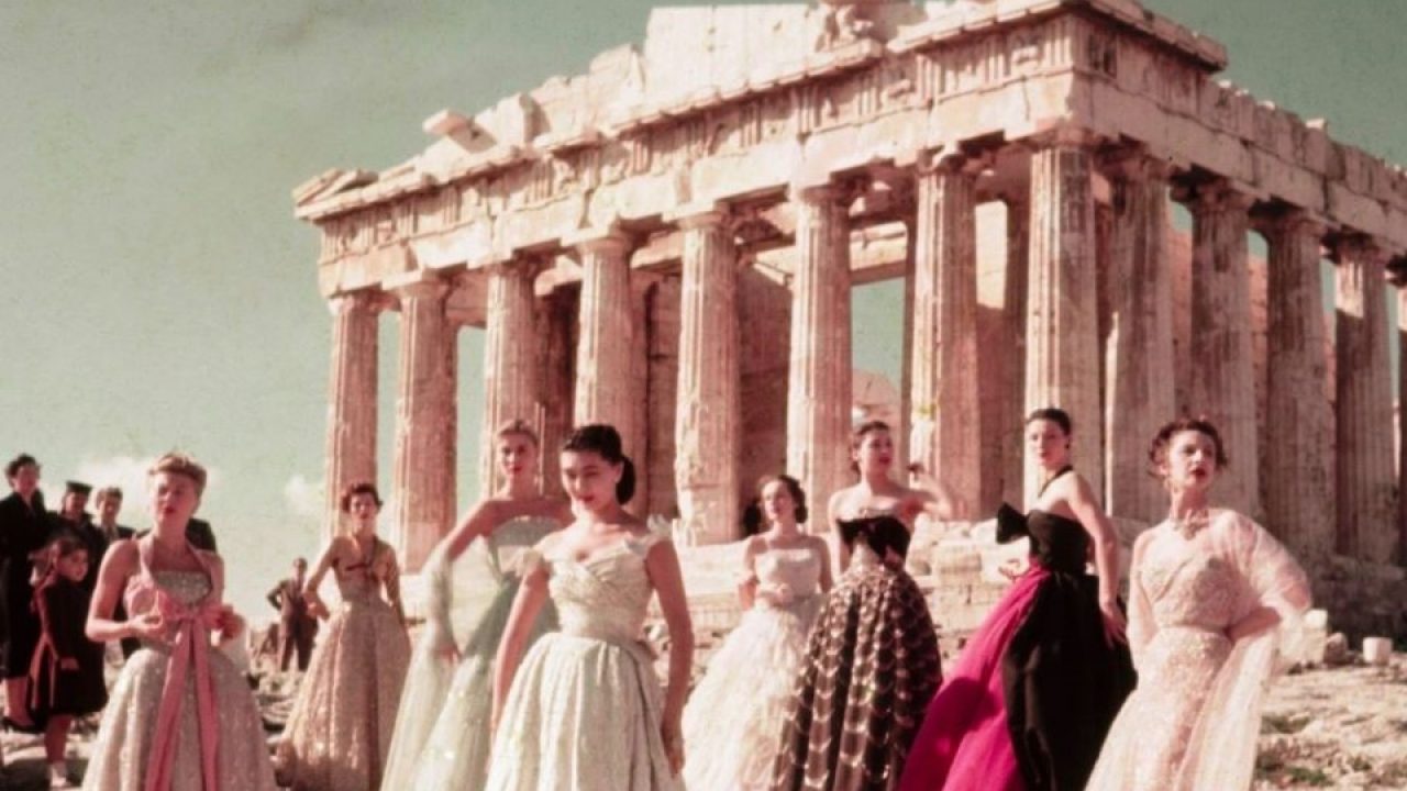 Τα μοντέλα του Dior, με την πληθωρική μόδα της εποχής. Είχαν ποζάρει σε μια προσπάθεια εναρμόνισης της σύγχρονης με την αρχαιοελληνική αίσθηση του κάλλους. Ο φωτογράφος που απαθανάτισε τις εικόνες ήταν ο Γαλλο-Ελβετός Ζαν-Πιέρ Πεντρατσινί του περιοδικού Paris-Match.