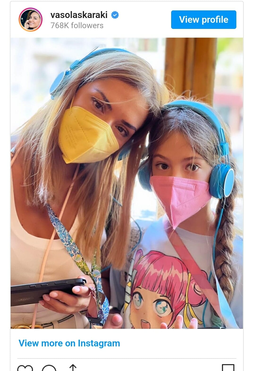 Στη μία φωτογραφία, η Βάσω Λασκαράκη ποζάρει μαζί με την κόρη της, όπου είναι από τις σπάνιες φορές που βλέπουμε καθαρά το πρόσωπό της μικρής Εύας.