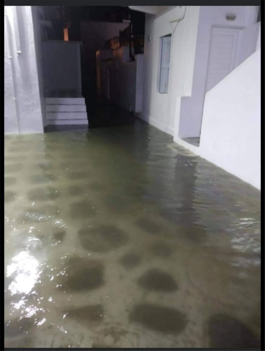 Εξαιτίας των έντονων καιρικών φαινομένων πλημμύρισαν τα σοκάκια του νησιού.