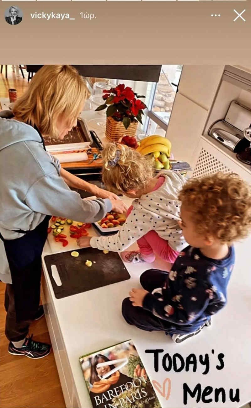 Το μεσημέρι του Σαββάτου η Βίκυ Καγιά και τα παιδιά της μπήκαν στην κουζίνα του σπιτιού τους, το οποίο είναι απλά μαγευτικό, και ετοίμασαν ένα πεντανόστιμο φαγητό.