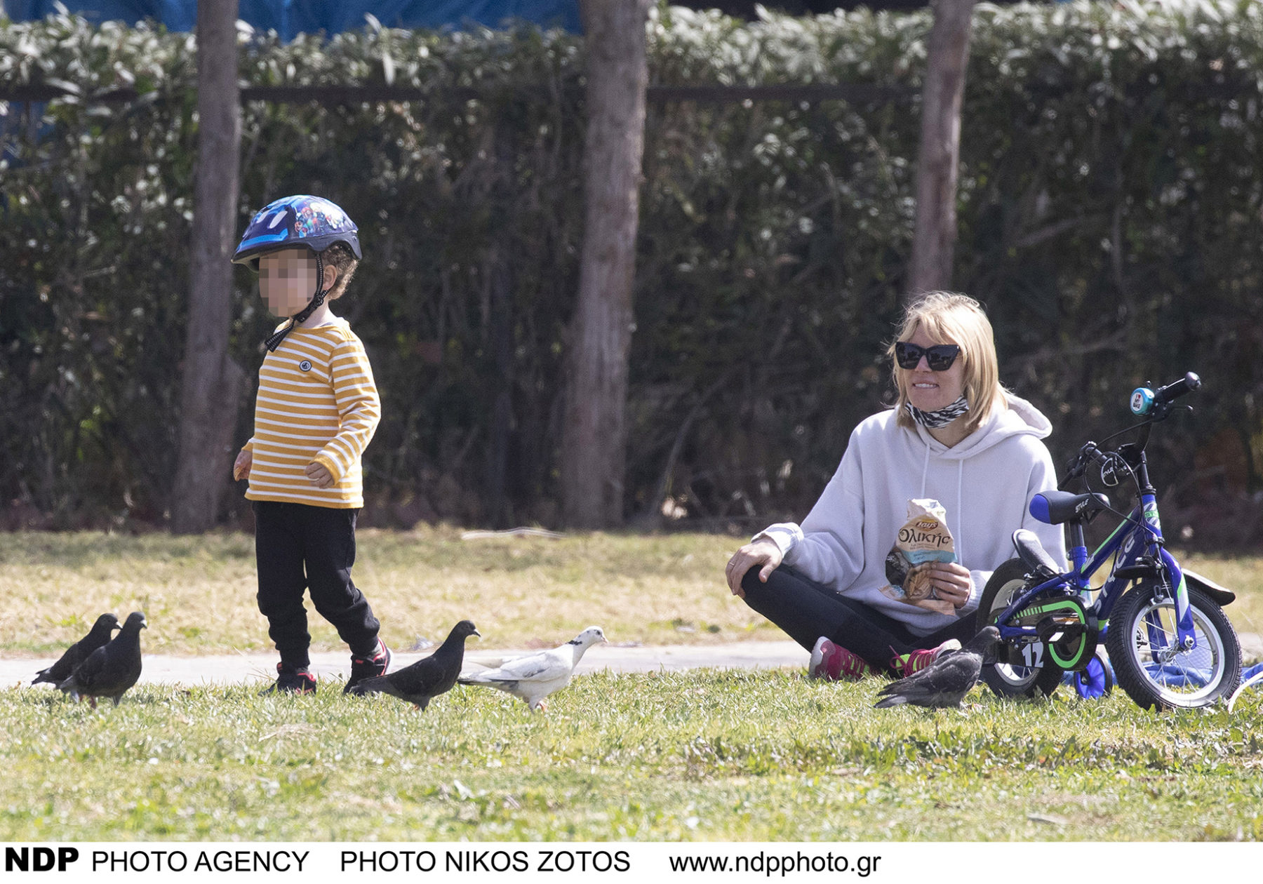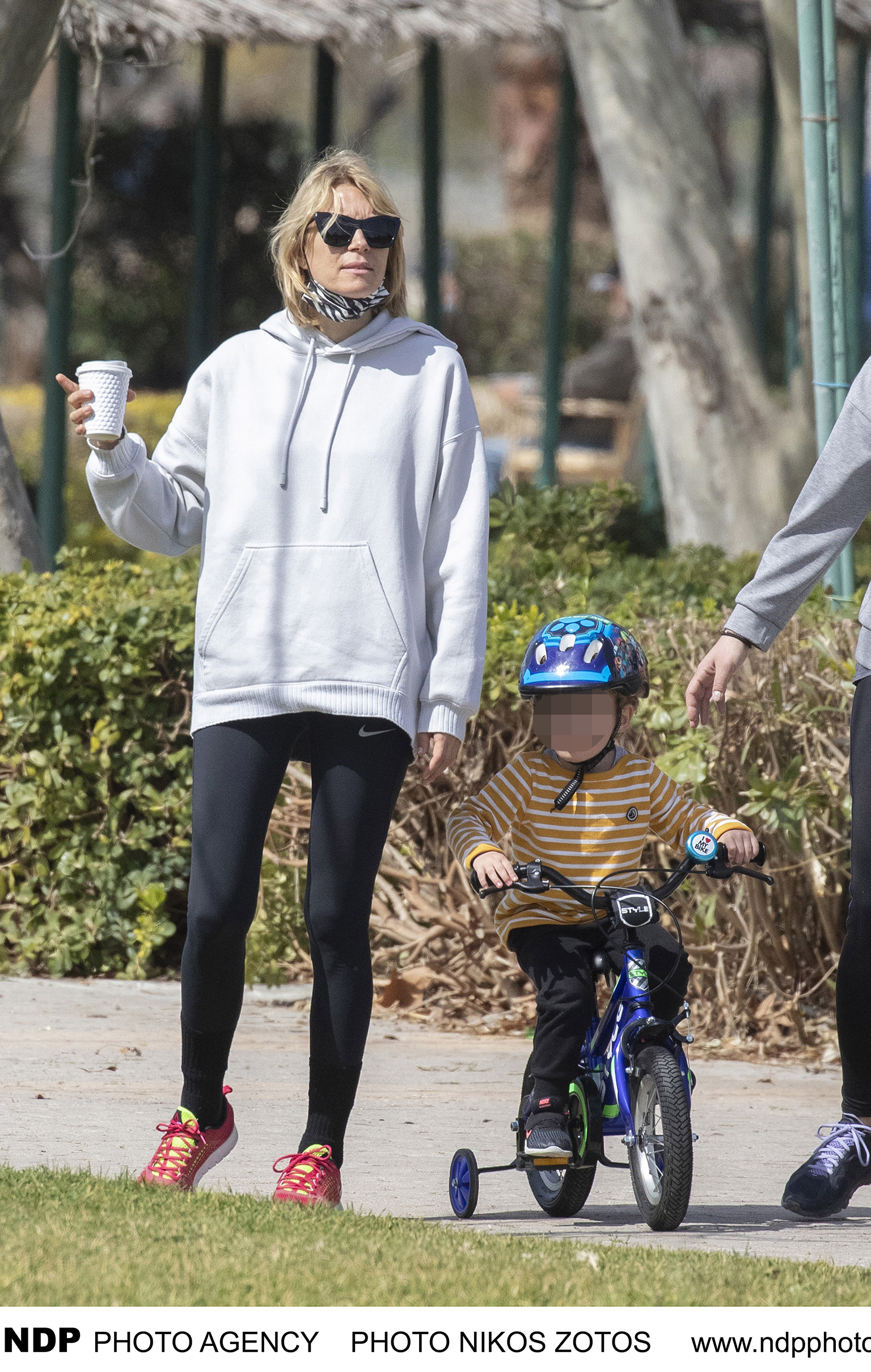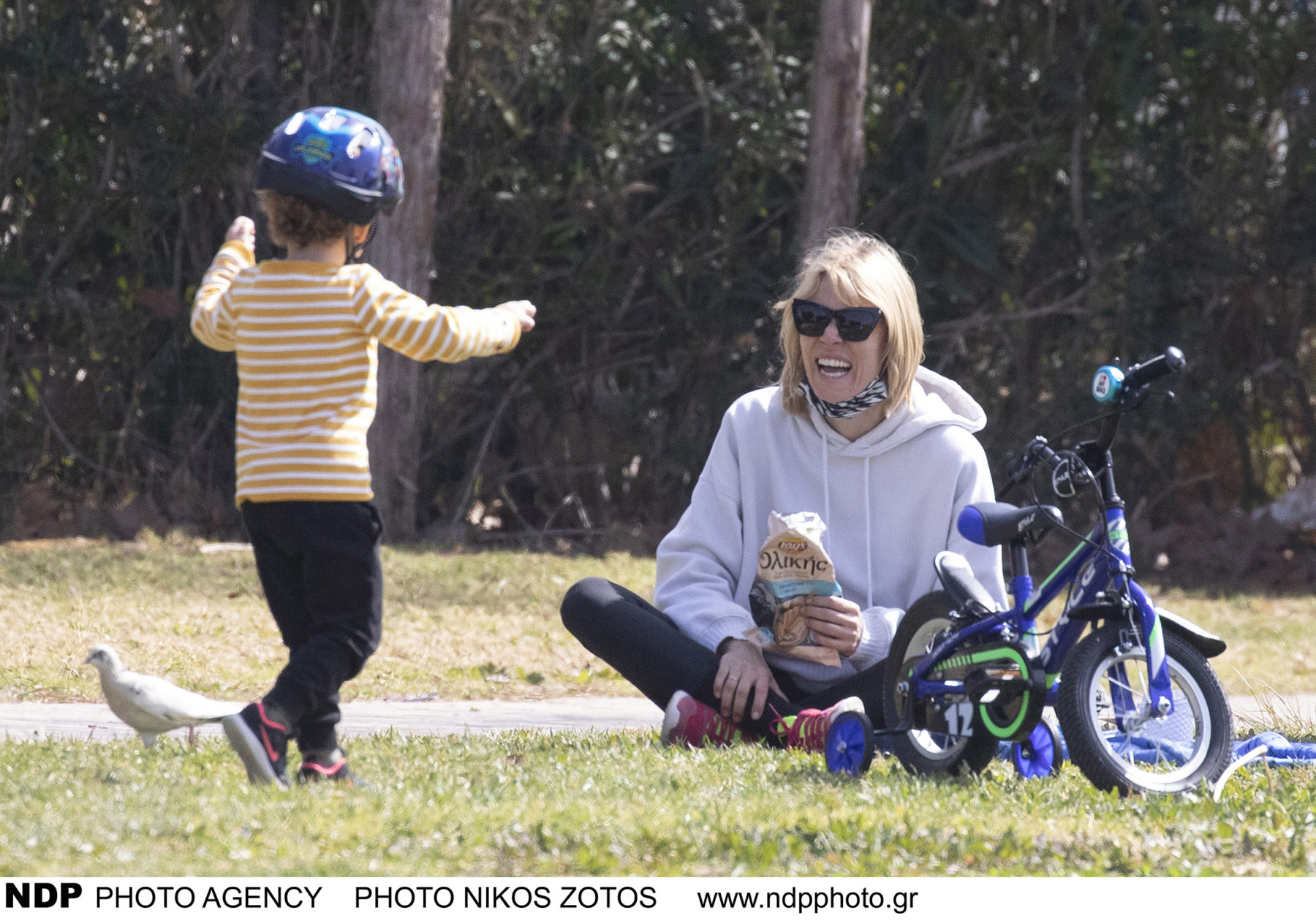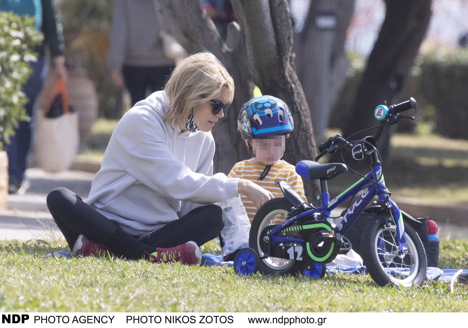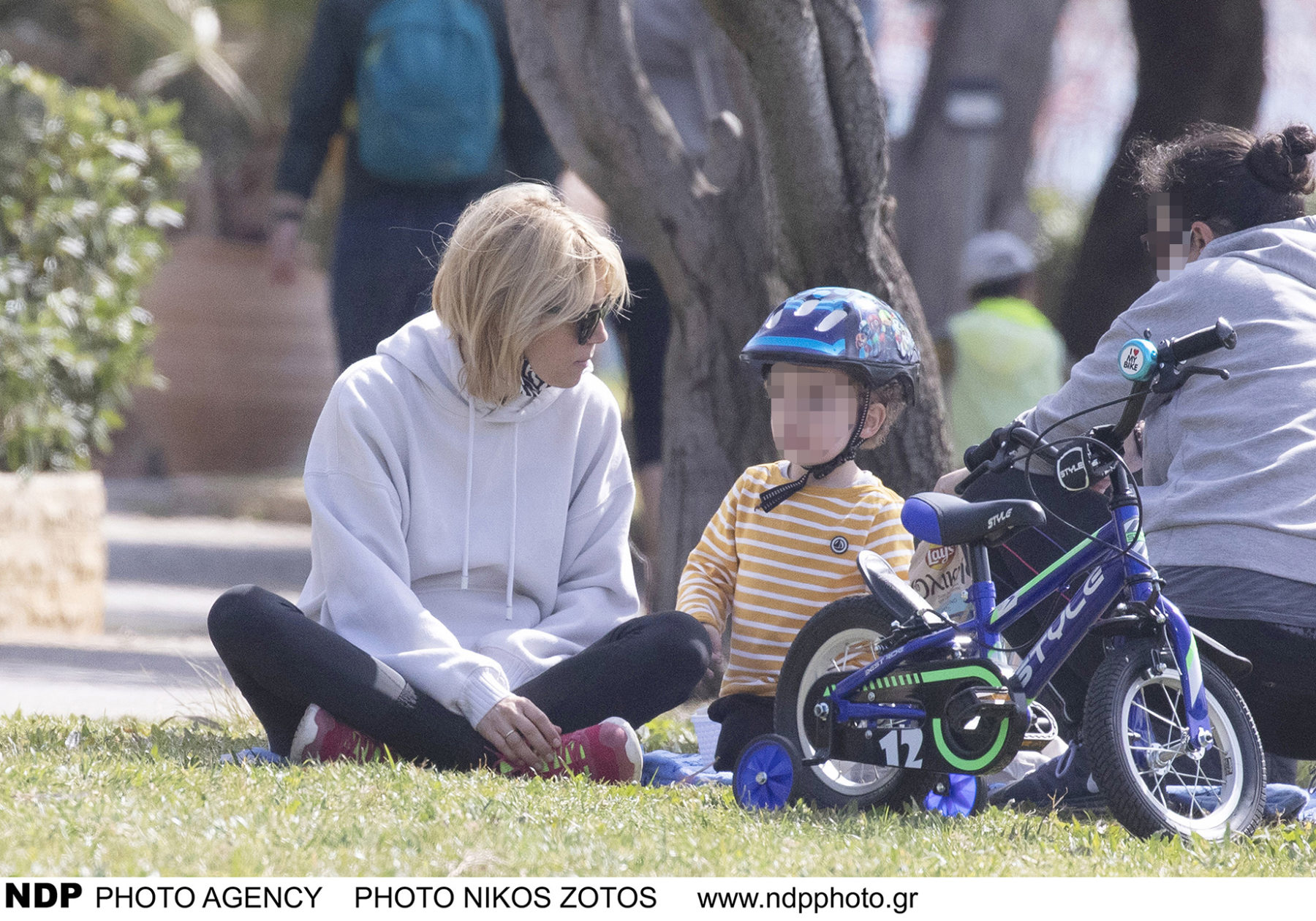 Οι ποδηλατάδες και το παιχνίδι δίπλα στη θάλασσα είναι από τις αγαπημένες τους δραστηριότητες αφού μένουν στα νότια προάστια. Η Βίκυ Καγιά απόλαυσε το παιχνίδι μαζί με τον γιο της Κάρολο και το γέλιο της δείχνει πόσο ευτυχισμένη είναι.