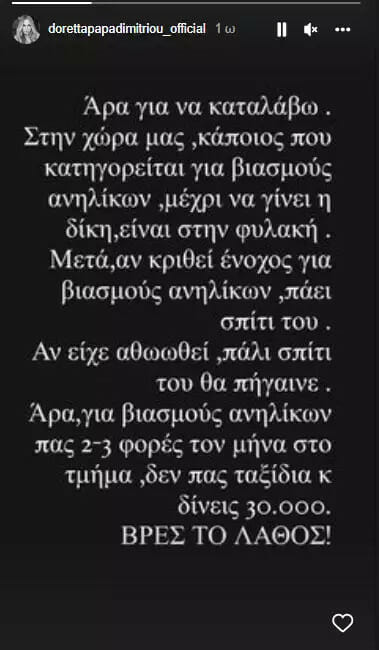 «Δεν μου προκαλεί σοκ η απόφαση. Δεν ήταν τυχαίο ότι βρέθηκε κατηγορούμενος. Πιστεύω ότι τα θύματα για να πάρουν την απόφαση να μιλήσουν δεν είχαν στόχο προκαλέσουν την δημοσιότητα όπως είπαν κάποιοι γιατί ούτε ξέρουμε τις ταυτότητες των θυμάτων. Σίγουρα κάτι θα έβγαινε από όλο αυτό και χαίρομαι πολύ που δικαιώθηκαν, έστω τα δύο από τα τέσσερα. Είναι δύσκολο να κάνεις καταγγελία γι’ αυτό και είπαμε ο καθένας όποτε είναι έτοιμος. Σημασία έχει σε κάποια στιγμή να έρχεται αυτή η ώρα που γίνεται η καταγγελία, ώστε να σταματάει η δράση του δράστη» τόνισε επίσης η Σοφία Παυλίδου.